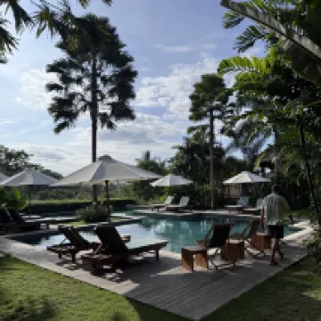 We had such a lovely stay. The hotel and amenities are really nice, great pool & restaurant, clean and comfortable room. The location is a bit far away, but the hotel can help you to arrange motorbike rent to reach the town, which takes about 10-15 min. It's nestled in the mountains which makes it very relaxing though!