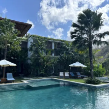 Hotel super acogedor, calidades buenas, relax…. La verdad que si buscas un espacio único para conocer Lombok lo recomiendo al 100%. Además el staff es super atento. ¡Recomiendo al 100% en pareja! Ah y la piscina increible!