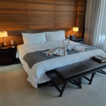 We thoroughly enjoyed our stay. The location was a little farther away from some of the popular tourist sites, but the ocean-front views were spectacular. Our room was spacious and clean. The breakfast buffet was great five days in a row (the coffee selection has room for improvement), and the food and service at the Chinese restaurant (where we had our Christmas Eve dinner) were fabulous. The hotel staff were warm and professional. We didn't get to use the fitness center because we couldn't find it. We thought it might be where the spa was but when we visited the spa, we couldn't find any service staff there.