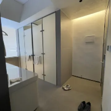 Room is good size just lack of places for storages. The table in the room is so small and still has a gap, leaving the tea cup easily drop from the gap. The shower room has no place to hang the bath / hand towels.
