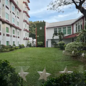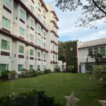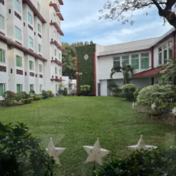 This is the ideal accomodation for people who will be taking their board exam at New Era University as it is a walking distance. The hotel is generous enough to provide packed meals for the takers who don't have time for the buffet breakfast from 6:00 AM until 10:00 AM. Everyone is polite and welcoming. However, based on our experience on the room itself, the bathroom drains too slowly leaving us with wet floors. The air conditioner drips and releases a foul smell that cannot be eliminated by disinfecting sprays, and the bed is too sunken creating loud noises even in slightest movements.