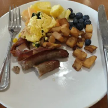 房間很乾凈,前台態度很好。早餐是典型的美式自助,衹要8美金一人,小孩4美金,非常划算。