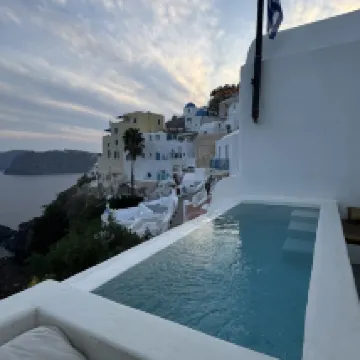 산토리니 이아마을은 여러 프라이빗 풀이 있는 호텔이 여러곳있지만 두카토는 관광객들이 거의 오지않는 끝쪽에 있어서 조용한 곳에 있습니다.