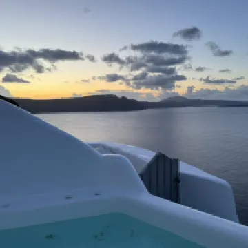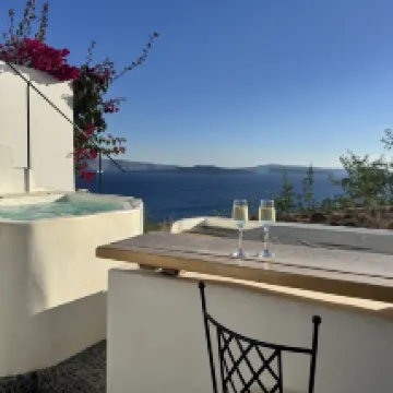 suite superior con piscina de inmersión al aire libre y vista a la caldera