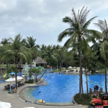 ¡Es un gran complejo! Todo el personal fue amable y el servicio fue bueno. Gracias a Wesley, el mayordomo que nos ayudó, pudimos quedarnos sin ningún inconveniente. La habitación fue mejorada y el desayuno estaba limpio y delicioso. Es un gran lugar para quedarse con niños. La piscina tiene una variedad de equipos para juegos acuáticos y la piscina se mantiene muy limpia.