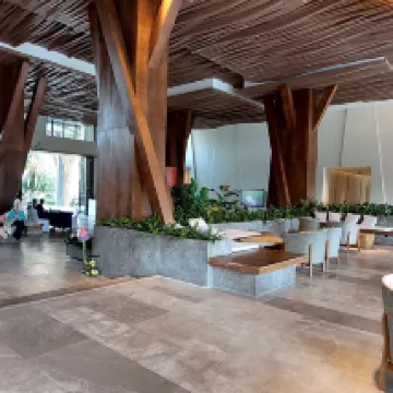 El diseño del hotel es fantástico, estilo resort. El té de la tarde de cortesía es delicioso y exquisito. Los socorristas de la piscina son serios y responsables y tienen un buen sentido de la seguridad. El mayordomo JACK es dedicado y brinda un servicio considerado. Lo único que lamento es que no hay estaciones de carga en el hotel, pero cargar cerca también es muy conveniente. Hotel muy rentable, muy recomendable.