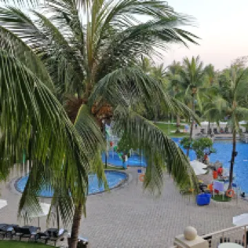 Reservé una habitación con vista al mar. El ambiente del hotel es muy bueno. Puedes ver el mar y los cocoteros desde el balcón, lo que te hace sentir bien. La piscina está muy limpia. También es bueno el servicio del mayordomo del hotel, Lily Yang.