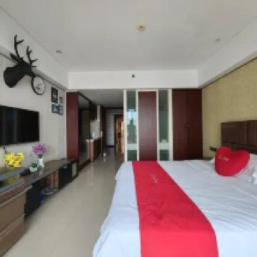 El servicio del hotel es atento, las habitaciones están limpias y ordenadas, y la ubicación es conveniente. El hotel es fácil de encontrar, muy cerca de la playa y el transporte es conveniente. La recepción es cálida y amable, ¡estoy satisfecho! Es muy animado. Hay todo tipo de comida abajo. Puedes bajar en cualquier momento y sentirte seguro. Hay un supermercado en el primer piso y unos grandes almacenes de verano a 50 metros. Es muy conveniente ir de compras. La habitación es grande, limpia, cómoda y tranquila.
