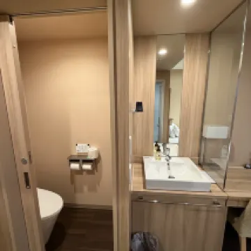The hotel is in a great location, close to the train station. The onsen is nice for relaxing after a long day, and the breakfast was good. However, the room layout was a bit tight and it was hard to find space for my large suitcases. Overall, it was a decent stay.