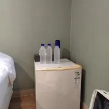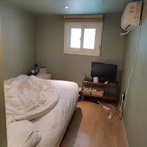 ¡La habitación estaba bien! El grifo de la ducha tenía un chorro potente, lo cual era cómodo, pero el baño no tenía zona separada para agua y ropa seca. Había una pequeña nevera con agua helada. El dueño no era coreano, pero hablaba inglés. Llevé mi propio adaptador para regleta, cepillo de dientes, pasta de dientes y limpiador facial. ¡Además, era muy económico!