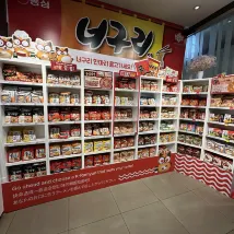Da la vuelta en Myeongdong. Hay una tienda de fideos picantes abajo. Junto a un 7-Eleven.