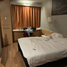 Me he alojado en el Ibis varias veces y esta es la habitación más pequeña sin mesa pequeña. Descubrimos que había algunos pelos en las sábanas de la cama pequeña, y había muchos pequeños pelos azules de ropa de algodón en las sábanas que estaban pegados a toda la sábana, en comparación con las sábanas de nuestra cama grande, era obvio. que se había dormido en la pequeña cama. Llamamos a recepción pero no respondieron. Luego fuimos a recepción y pedimos cambiar las sábanas. Dijeron que no había servicio de habitaciones y nos pidieron que las cambiáramos nosotros. No pudimos hacer nada. Fue el La primera vez que dimos una mala crítica.