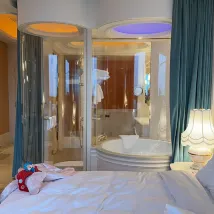 Es el tipo de hotel extraño dirigido por un propietario local. Tiene decoraciones extrañas, baños transparentes, vidrios de pared a pared y luces violetas. No sé si pensé que era un love hotel. Las instalaciones en general son incompatibles con la tendencia actual de la inteligencia. Hay artículos de pago en todas partes de la habitación. El truco es que hay un cargo por las sales de baño en la bañera. Accidentalmente me atraparon. El límite de agua es de solo dos botellas. El cargo adicional es de 5 yuanes por botella. con el posicionamiento de los cuatro diamantes.