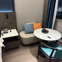 La habitación estaba muy limpia y ordenada, lo que nos dio mucha tranquilidad. El hotel cuenta con servicio de lavandería de autoservicio, lo cual es muy conveniente. Cuando pedimos comida a domicilio, un robot la trajo directamente a nuestra habitación, una experiencia fantástica. El aire fresco y la amabilidad del personal hicieron que nuestra estancia fuera completamente satisfactoria.