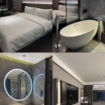 El hotel parece bien decorado, pero las instalaciones son terribles. Las sábanas de la cama Simmons estaban tan hundidas que parecía que dos personas ya las habían usado, colapsando tanto a la izquierda como a la derecha. Apenas logramos pasar una noche, y solo después de que el personal de servicio lo vio al día siguiente, nos cambiaron a otra habitación.