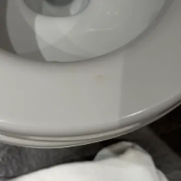 Hay tres manchas de orina en el inodoro. Intenté limpiarlas con alcohol y descubrí que se pueden quitar por completo. ¿La señora de la limpieza nunca revisa el inodoro?