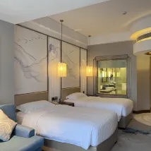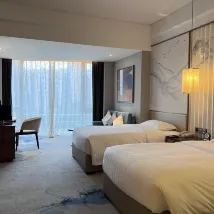 El diseño de la habitación del hotel es novedoso y moderno, con un gran espacio, instalaciones completas como artículos de tocador y artículos de limpieza, y el colchón es moderadamente suave y duro, cómodo y limpio.
