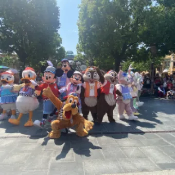 El jefe es muy amable y entusiasta. Conocí a muchas hermanas que vinieron a Disneylandia. Mi compañera de cuarto también compartió conmigo los bocadillos que trajo de Japón.