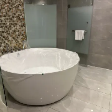 5. La higiene es descuidada. La bañera está llena de polvo al tocarla con la mano. Es obvio que no la han limpiado en muchos días.