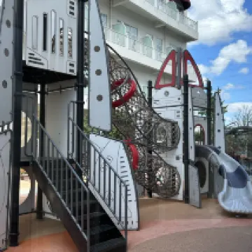 El ambiente en la tienda es muy limpio y cómodo, y el estilo de decoración es único, creando un ambiente cálido y confortable. Está muy cerca de Disney y del centro comercial. Hay autobuses hacia y desde Disney, lo que hace que viajar sea muy conveniente. El personal es entusiasta y paciente, y el servicio es muy bueno. También hay un paraíso interior para niños en el exterior, elegiré este lugar la próxima vez que venga.