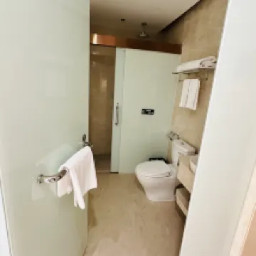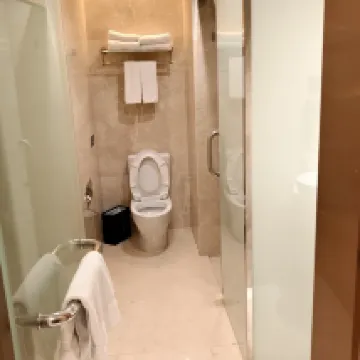 Tanto la habitación como el vestíbulo están en la quinta planta. Abajo hay un hotel de 7 estrellas y muchos restaurantes. La habitación era cómoda y luminosa. La cama era grande, pero las sábanas tenían dos agujeros. El televisor no era lo suficientemente grande. Sin embargo, la zona de películas gratis tenía una amplia selección, y algunas habitaciones incluso tenían nevera. ¡Sin duda, me alojaría de nuevo!