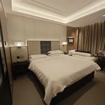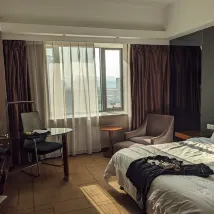 I booked in just after 9pm after getting off the fast train. My host teacher picked me up from Shijiazhuang station and drove me to the hotel but we couldn't drive near, because the street was closed to traffic. We walked about 500m and my teacher helped translate at check in, as I was very tired after the long flight from Australia following directly by the 7hr train trip. I just used my passport. The room smelt a bit of cigarette smoke and the bad air quality seemed to be leaking in somewhere. I ran my portable air purifier all night. The bed was very comfortable and everything seemed in very good working condition apart from the thermostat. Despite trying to reduce the room temperature to 16-18°c it remained at 23-24°c which is too high for me. I had a boutique queen room that became very warm when opening the thick curtains. It is quiet and clean.
