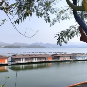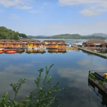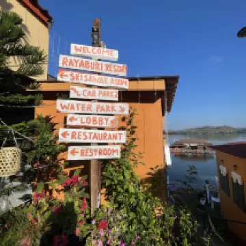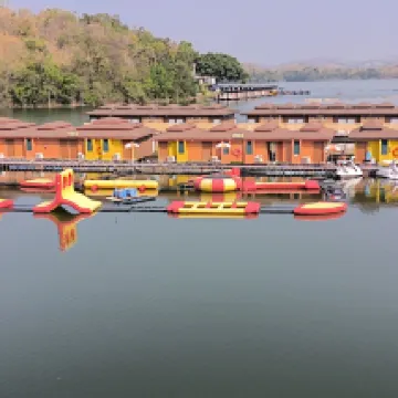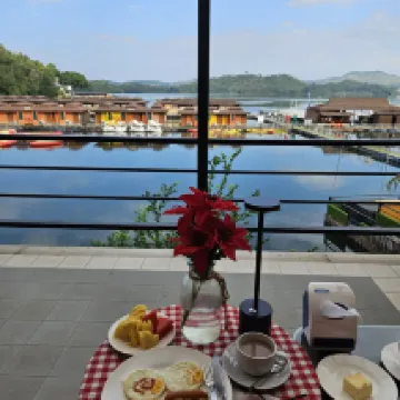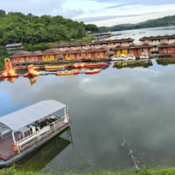 Tuve una experiencia maravillosa en el Raya Buri Resort Kanchanaburi, un hotel flotante en la presa Sinakarin. La ubicación es impresionante, rodeada de exuberantes colinas verdes y agua cristalina. El camino que lleva al complejo es un recorrido panorámico que crea el ambiente ideal para una escapada relajante.