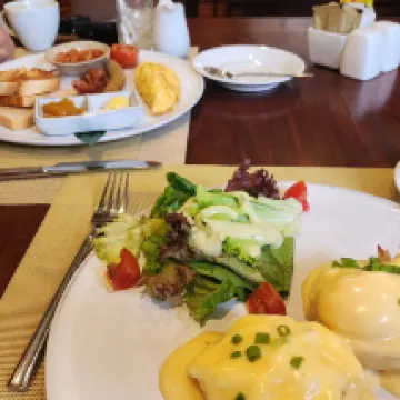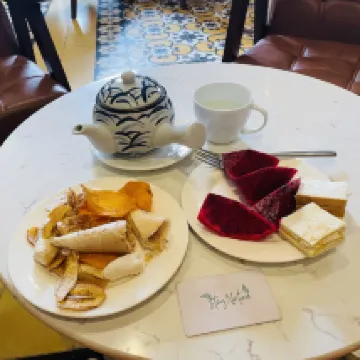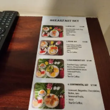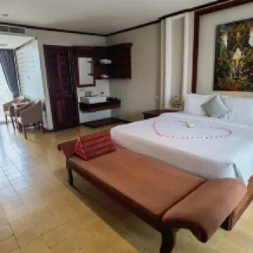 5 noches. Desayuno (de pago), 8 tipos, amplia selección y abundante. Tuk-tuk gratuito a la ciudad de 18:00 a 21:00, que usé todos los días. El té de la tarde gratuito, de 15:00 a 16:30, estuvo bien, aunque no pude usarlo siempre. El baño era amplio y práctico. Sin embargo, la presión del agua era baja, por lo que la ducha se alargó. El hotel está un poco a las afueras, pero como de todas formas tenía que usar un tuk-tuk, no tuve ningún inconveniente para desplazarme. Comparado con los hoteles del centro, está un poco lejos de las ruinas de Angkor Wat y un poco más cerca de Tonle Sap. El personal fue amable y respondió a mis preguntas sobre eventos locales con mucha atención, lo cual agradecí.