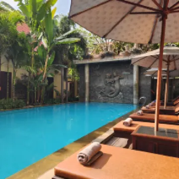 El servicio y la hospitalidad fueron de primera. Desde las toallas frías y refrescantes, la bebida de bienvenida con canela dulce el primer día hasta la amabilidad del personal, siempre dispuesto a servir con sonrisas y risas a cualquier hora de nuestra estancia, ¡sin duda volveríamos! Aunque el camino al alojamiento es un poco oscuro y tranquilo por la noche, el alojamiento está a 10 minutos en coche de Pub Street e incluso ofrecen transporte gratuito en tuk-tuk para llevarte por la zona si lo necesitas.