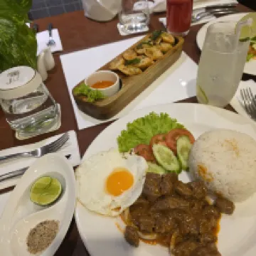 Me decepcionaron bastante las instalaciones, especialmente la piscina. Estaba sucia y verde. Me dijeron que la limpiaban todas las mañanas. El desayuno es pésimo comparado con las últimas noches que nos alojamos en Pub Street, un hotel de 4 estrellas que ni siquiera es de marca internacional y además más barato. No hay mucha gente en el hotel y creo que por eso el desayuno tiene poca variedad. Creo que no pagaré esta tarifa, ya que está catalogado como hotel de 5 estrellas. Hay que recoger los huevos del mostrador cuando están listos. En el último hotel en el que me alojé, los traían a la mesa una vez listos. Además, no se atreven a abrir la puerta del balcón por los mosquitos. Por lo tanto, no se puede disfrutar del aire libre a menos que se sienta cómodo con el olor. El servicio de conserjería fue bueno y atento. En cualquier caso, no pagaré esta tarifa si no puedo disfrutar de la piscina ni del desayuno.