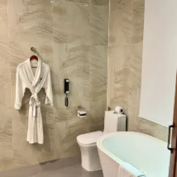 ¡Excelente servicio! Todos fueron muy amables. Tuvimos conversaciones muy agradables con el personal. Las instalaciones tenían todo lo necesario: gimnasio, servicio a la habitación las 24 horas, piscina, bar y masajes. La ubicación es accesible a pie a muchos restaurantes, tiendas, etc. Disfrutamos mucho de nuestra estancia y sin duda volveríamos. La habitación era amplia y la cama cómoda. Amplio espacio para relajarse, dos escritorios, un baño amplio, bañera/ducha y un armario. ¡El personal fue increíble! Nos encantó todo el mundo, y el Sr. November, en la piscina, nos enseñó muchas costumbres tradicionales. Tuvimos una conversación maravillosa con él y con todos los presentes. El personal de recepción fue muy atento y amable. No puedo decir nada negativo; es un hotel muy bueno.