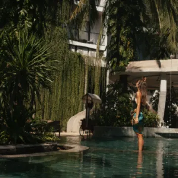 El ambiente del hotel es especialmente confortable y las plantas verdes, las flores y la piscina combinan a la perfección. La piscina tiene tres profundidades y también es apta para que naden los niños.