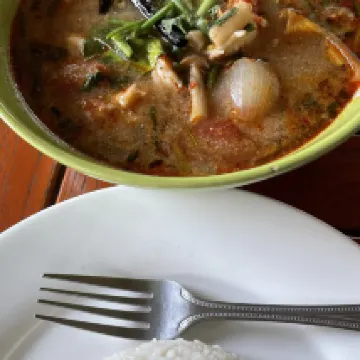 El ambiente es tranquilo, hermoso y muy emotivo. Lo que más te acompañará aquí es el sonido de la naturaleza. El desayuno está incluido en el alojamiento, sencillo pero delicioso. Cabe mencionar que el chef aquí es muy bueno. Recomiendo su sopa Tom Yum, que es deliciosa y tiene una buena relación calidad-precio. Los ingredientes son frescos, abundantes y las porciones relativamente grandes. El personal aquí es cálido, amable y comprensivo. Me ayudaron mucho y fue una muy buena experiencia.