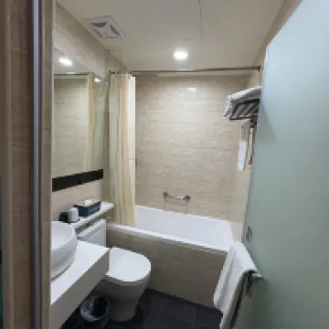 The room was mostly clean and comfortable and the bathroom was well lit. The location was near Taoyuan station and it was convenient to travel to other areas. There was a straight bus from the airport to a bus stop that is within walking distance to the hotel. Was a short but nice stay overall ☺️