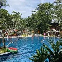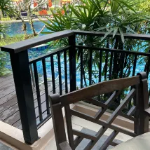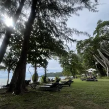 Erg prettig hotel! Kamers mooi en gelegen midden in een jungle! Genoeg zwembaden om uit te kiezen en anders het strand voor de deur. Omgeving is misschien wat saai, een straat met wat restaurants en shops. Als je wat meer levendigheid wil even verder kijken in Khao Lak. Zelf scooter gehuurd zodat je ook zelf de vrijheid hebt is een aanrader. Ontbijt ruime keuze en erg lekker! Personeel top!!