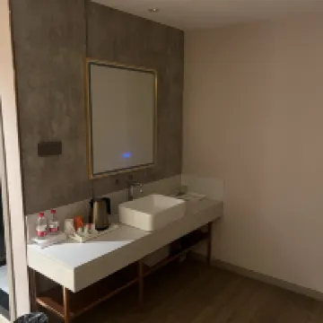 As soon as I entered through the door, I enjoyed the decor of the room, the bed and the lights. The bathroom also look tight but clean, like- a sleek look.