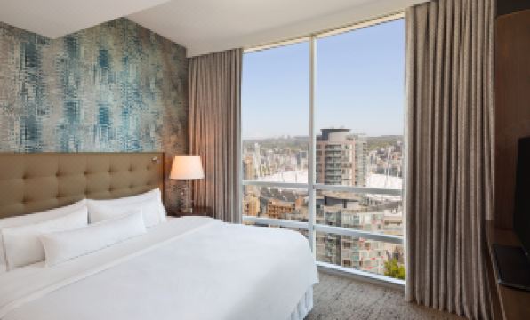 Habitación accesible para movilidad y audición con cama king size y bañera