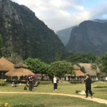A very pleasant stay on the outskirts of town. Its not close to "the action" but that is the draw for non-backpackers that don't want to be in the urban setting. Suggest getting a motorbike, makes getting into town and back easy (20 minute ride on a good road). Note this is a very Chinese-oriented resort - the restaurant is Chinese and attracts big groups for lunches and dinners - nothing wrong with that, but won't be a western menu if you want western food. Setting is lovely near the mountains. Definitely good value for money - would rate it in the 3/4 star range.