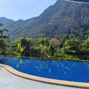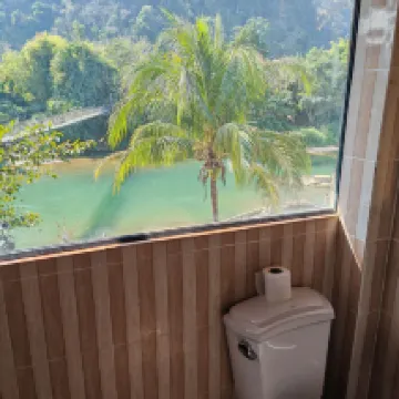 방비엥 시내에서 다소 떨어져있어 차가 없으면 다소 불편할 수 있으나 리조트 내에 전용 계곡이 있어서 물놀이 하기에 좋았으면 주변 경관이 아주 좋습니다. 시설은 다소 오래되었으나 침구류도 깨끗하고 지내는데 불편함이 없었습니다