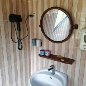 Однако сам отель, к сожалению, не оправдывает заявленную звездность. Наш номер оказался в ужасном состоянии. Он явно требует срочного ремонта и модернизации – стены обшарпанные, мебель старая, а по углам повсюду паутина, что сразу оставляет неприятное впечатление. Шпингалет в туалете на двери отсутствует. По фото на сайте невозможно понять, что у домика есть второй этаж, и это стало неожиданным минусом. Вход на второй этаж находился в нашем блоке, поэтому сосед постоянно проходил мимо нас, создавая шум. Кроме того, слышимость в номере была очень высокой – каждое включение воды или шаги наверху отчетливо слышны, что сильно мешает комфортному отдыху.