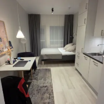 Si se hospeda por más de tres días, recomiendo encarecidamente este hotel, limpio, elegante, seguro y conveniente. Antes de leer algunas reseñas, es un poco sincero quedarse, porque es completamente inteligente, porque el check-in del hotel tiene que Presione Contraseña para ingresar al registro inteligente, así que asegúrese de revisar el correo. El correo que me enviaron a la casilla de correo no deseado pensé que no lo recibí. El correo entregado por el hotel, ahora es verano, claro, no hay problema, el invierno no, por eso revisar el correo es muy importante, después de ingresar al hotel es muy conveniente, hay gente de guardia durante el día, nadie después de las 18 en punto, este punto para que quede claro, ingrese por todas las puertas Toque la tarjeta, dispare en el ascensor, dispare en el piso, por lo que es muy seguro, el precio es excelente, incluso en el área AB para comprar el día Los pases son más baratos que alojarse en un albergue juvenil, mucho mejor, transporte súper conveniente, en la estación central de trenes de la ciudad todas las líneas p al aeropuerto en 15 minutos en autobús, hasta la estación mayyrmaki, puedes tomar el autobús 520 530 30 dos paradas minutos, parada justo enfrente del hotel, el equipaje grande no es ningún problema, no compre el pase de un día, el billete de ida por 2,9 euros puede sentarse durante unas horas, incluido todo el transporte de Hsl, no compramos el pase de un día Fui a Finnburg y jugué para usar este boleto, además, el servicio del hotel cambiará las toallas, el gran corazón tiene una cocina y sala de estar súper elegantes, la habitación tiene cocina y lavadora, hay detergente para lavar, hay una pequeña terraza. En resumen, el precio es súper razonable y el transporte conveniente, el tren hasta el centro de la ciudad está a 20 minutos, el hotel a una estación de distancia, hay 4 súper supermercados, camina más de 5,6 minutos. com ayudó en primer lugar.