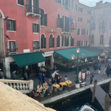 Personal extremadamente amable, ubicación increíble con excelente vista al Ponte di Rialto. Definitivamente recomendado