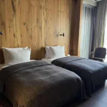 El diseño es magnífico y el hotel merece la pena visitarlo. Además, está cerca del casco antiguo. El desayuno estuvo bien, con una gran variedad de opciones, aunque el servicio fue un poco lento. Dos inconvenientes: el lavabo era un poco pequeño y las cortinas no bloqueaban la luz (recomiendo cambiarlas), lo que afectó mi sueño.