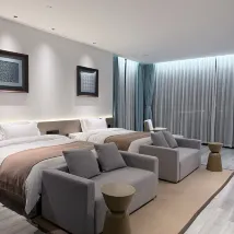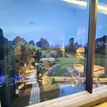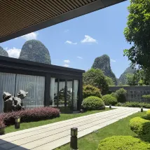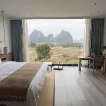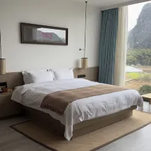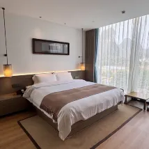 Al abrir las puertas de cristal de la habitación, se despliega ante ti un paisaje de montañas kársticas digno de una pintura de tinta china. La niebla matutina y el resplandor del atardecer hacen que cada mirada por la ventana sea una sorpresa. El 'Espejo del Cielo' en la azotea es la guinda del pastel; el cielo azul, las nubes blancas y las montañas se fusionan en la superficie del espejo, creando fotografías espectaculares sin necesidad de filtros. La vista desde la piscina también es inmejorable, permitiéndote admirar las montañas mientras nadas.
