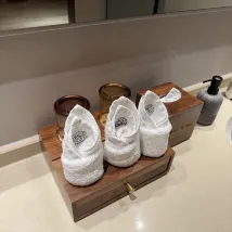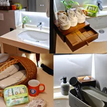 El hotel es muy atento y hay cintas para el pelo, peines y lacas para peinar en las zonas comunes durante el periodo de higiene. Llevé a una persona mayor de 70 años que me preguntó si necesitaba un taburete de plástico para bañarme (aunque tenía pensado preguntarle directamente al hotel antes de irme, pero lo olvidé al llegar. Por suerte, en recepción tuvieron la amabilidad de pedírselo).