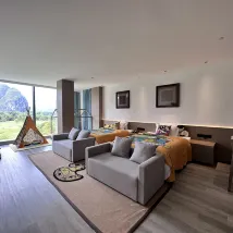 Reservé una habitación con vistas a la montaña y las vistas desde el gran ventanal son espectaculares, ¡una inmersión total en el paisaje! Las instalaciones de la habitación son muy completas, y los artículos de tocador son de gran calidad, incluyendo un inodoro inteligente y minibar. ¡Cada detalle está cuidado! El desayuno estaba delicioso. Había pan, fruta, gachas calientes y guarniciones, suficiente variedad y todo muy rico. Después de un buen desayuno, ¡empiezas el día con energía! Además, pueden llevarte la comida a la habitación. ¡El servicio es muy atento!