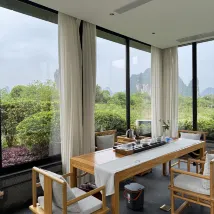 • Paisaje pintoresco: Las habitaciones cuentan con amplios ventanales de suelo a techo o ventanas panorámicas. Ya sea tumbado en la cama o sentado en el sofá, podrá disfrutar del hermoso paisaje del río Yulong, las ondulantes montañas verdes, las ondulantes balsas de bambú y otros hermosos paisajes.