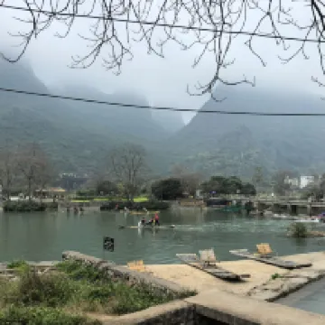 Location is poor. Buses cannot get in. Road very narrow, congested and busy. Difficult to catch DiDi. Sometimes wait for more than 20mins before the driver accepted you. Only advantage is opp Xiayu Wharf where you start the bamboo raft. However this pier only caters for 2 persons in a raft. If you travel in three, one of you will have to pay full price (¥200) for a raft. Not many shops around except restaurants everywhere. Breakfast is simple. Not much variety. No coffee! Very noisy too!