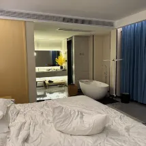 La habitación era estupenda. Un baño de estilo japonés con bidé, un balcón en el que te puedes sentar y un televisor enorme. Las camas eran muy cómodas. El desayuno era un bufé sencillo con una estación de fideos que preparaba fideos de arroz guilin frescos y wonton. Hay una piscina al aire libre, pero como llegamos en enero, no estaba abierta. El hotel está a 20 minutos en coche de West Street.