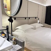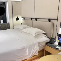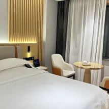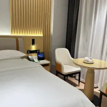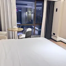 EspañolUn hotel muy limpio y agradable con muchas características inteligentes. Las luces del espejo de tocador fueron un buen detalle, así como el asiento del inodoro con calefacción, la descarga automática y las cortinas automáticas. También aprecié los puntos de carga USB, los cables adicionales y el espacio para colgar la ropa. Las camas son muy cómodas. La ubicación estaba a unos 10 minutos en coche de los mercados de Yiwu, pero más tiempo en las horas pico. El desayuno era razonable si te gusta la comida china. El personal, especialmente el hombre del hotel, fue muy servicial. La lavandería y el gimnasio eran convenientes, pero el gimnasio solo abre de 10 a. m. a 10 p. m. debido a que está al lado de algunas de las habitaciones de los huéspedes y existe la preocupación de que haga demasiado ruido. Después de las 8 p. m., el gimnasio está cerrado y debes pedirle a la recepción que lo desbloquee. Además, si vas al gimnasio, es posible que quieras ir temprano en la mañana, ¡pero esa no es una opción! Sin embargo, en general, una estadía agradable y con una buena relación calidad-precio.